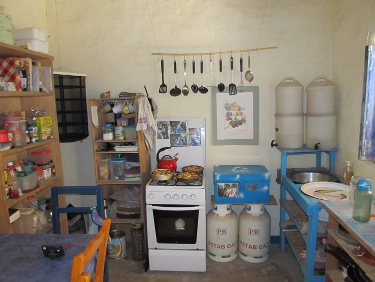 I can completely relate! It took me so long to even think of HOW I could try to make our mud hut in Chad beautiful. Everywhere we’ve lived, my version of what makes our home lovely has changed somewhat. It’s usually the little things: the small triumphs of beauty over blah, creativity over chaos, that make a house into a home. Here’s a picture of my kitchen in our African village, shortly before we had to evacuate, due to terrorist activity. The reed “bar” to hang my kitchen tools and the second-hand poster art were a couple of things that made me feel happy to be in that simple kitchen with no running water, and only occasional electricity.
