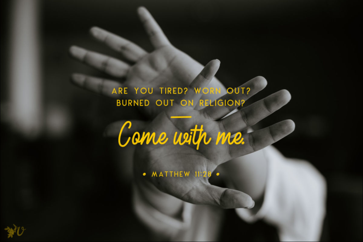 Are you tired? Worn out? Burned out on religion? Come to me. Get away with me and you’ll recover your life. I’ll show you how to take a real rest. Walk with me and work with me—watch how I do it. Learn the unforced rhythms of grace. I won’t lay anything heavy or ill-fitting on you. Keep company with me and you’ll learn to live freely and lightly. (Matt 11: 28-30 The Message)