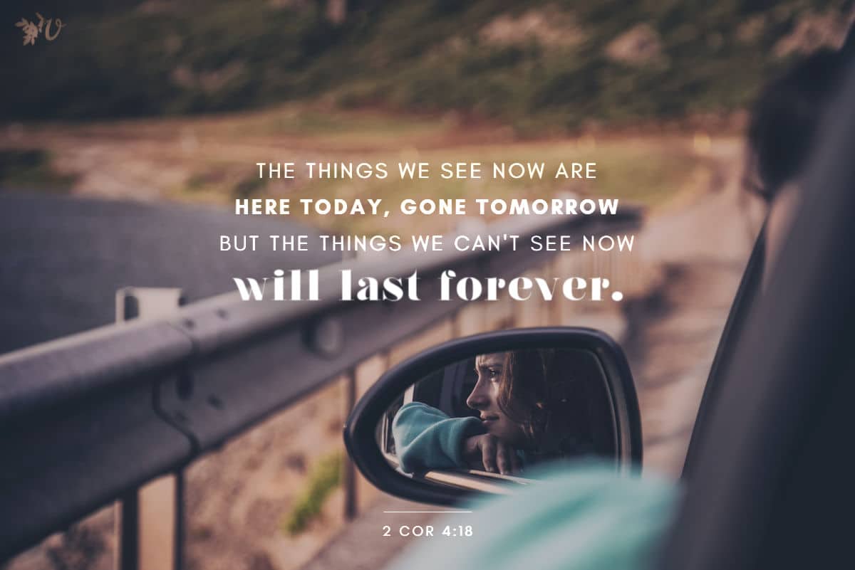In the Message, 2 Corinthians 4:16-18 says, “So we’re not giving up. How could we! Even though on the outside it often looks like things are falling apart on us, on the inside, where God is making new life, not a day goes by without his unfolding grace. These hard times are small potatoes compared to the coming good times, the lavish celebration prepared for us. There’s far more here than meets the eye. The things we see now are here today, gone tomorrow. But the things we can’t see now will last forever.”