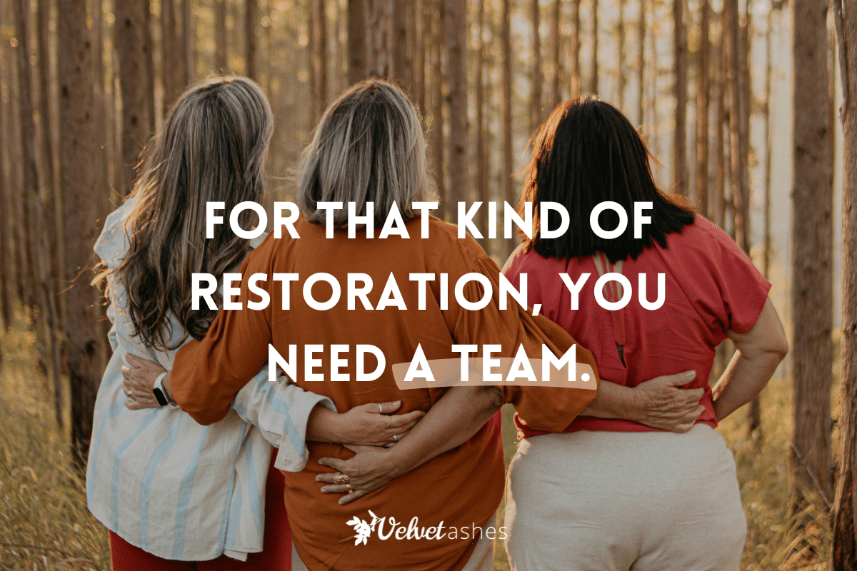 Where do you need to see restoration? What comes to mind when you think of a healing team? What can you do today to start the process of building your healing team?