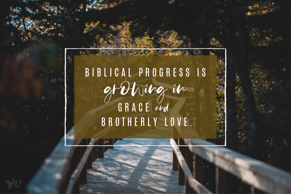 Biblical progress is growing in grace and brotherly love. It is the complete antithesis of the message we gulp down like Gatorade alongside the rest of the world. This message seems harder to swallow. We are challenged not to pick ourselves up by our own bootstraps to craft a fabulous life but to study to be quiet and to be busy in our business of loving others well. We are to commit ourselves to live in contentment the life and calling God has given us.