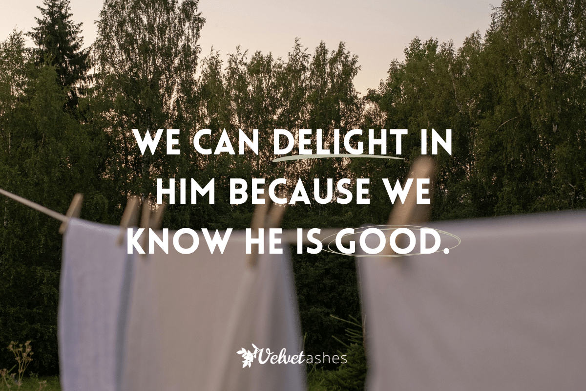 When I think of delight, I think of my one-and-a-half-year-old laughing in pure joy when she sees her daddy walk through the door. Daddy equals fun. She checks the shopping bag to see what treats he brought her. She throws her hands up to be scooped up into a hug. Just hearing his voice at times will wake her up from a nap because she wants to be with him, near him. He delights in her, and she delights in him.