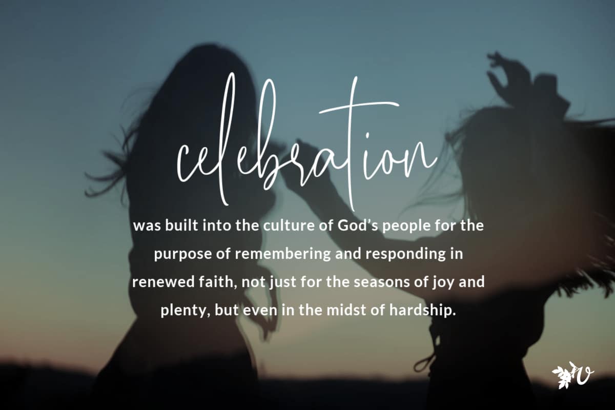 Similarly, during the Feast of Tabernacles, Israelite families were required to live in tents made of branches of trees, recalling the forty years in the wilderness, and celebrating in gratitude their freedom from slavery. Hanukkah celebrated God’s continued redemption of his people. Purim highlighted the providence of God and his constant care for his people, even while they were living far from the promised land. Celebration was built into the culture of God’s people for the purpose of remembering and responding in renewed faith, not just for the seasons of joy and plenty, but even in the midst of hardship.