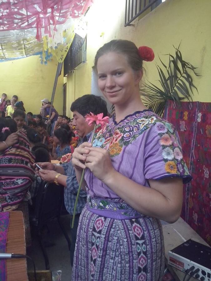But mostly when in Rome (or Solola, Guatemala), I dress like the Romans. And, yes, I feel comfortable like that. Americans usually don’t believe it. It’s a really long piece of fabric with a buckle-less belt wrapped around it (and not even tied!). When you first start dressing that way, you alternate between the fear that the belt will loosen and the skirt (for lack of a better, non-culturally specific word) will fall and the fear that the belt is so tight that you will just never breathe again. I sometimes wear their top, but often I opt for a t-shirt as it gives me more movement in the arms. (I think my CG has already seen this photo, but the rest of you haven’t. In the picture, I’m wearing the traditional top as well.)