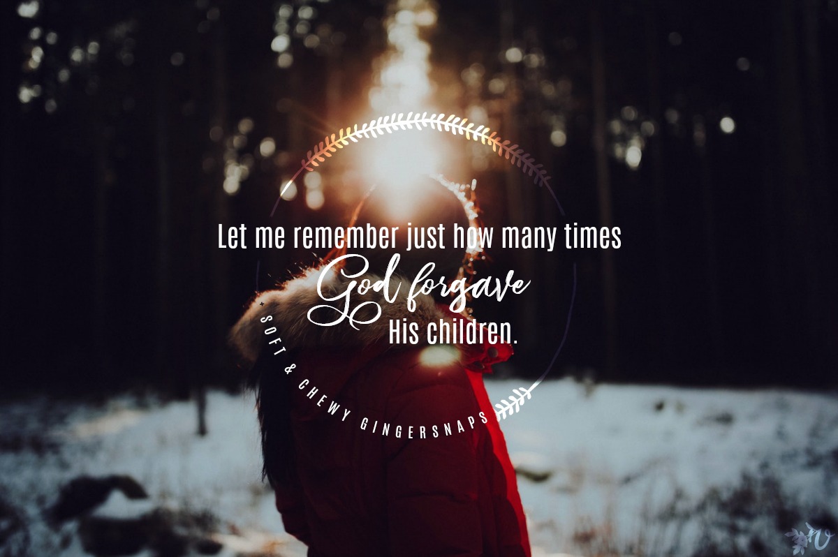 I’m going to post this in my room so that when the oldest is teasing the younger ones for the millionth time, and the youngers are screaming “STOP!” at him after being told repeatedly that’s not how we handle things, and when the mischievous toddler steals candy and hides to eat it for the nth time, well, let me remember just how many times God forgave His children. And half the time, they weren’t even truly sorry.