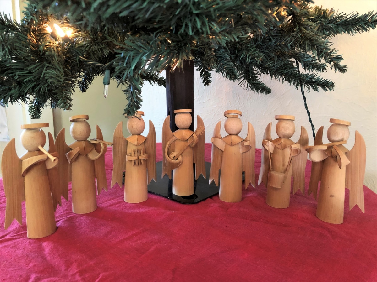 Every year, I unwrap my little bamboo angel choir and lovingly arrange them near my nativity set. While living in Indonesia, I was always on the lookout for unique, well-made items I could use for decorations or to give as gifts to family and partners. Imagine my delight one year when I discovered these hand-carved figures. Each one stands erect sporting a different instrument. While not a nativity set in themselves, they remind me of the involvement of the angels throughout the Christmas story.