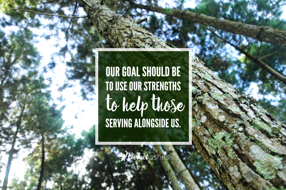 Instead of striving to have the best ministry or the best family life or the best friendships with those around us, we should strive to encourage and help each other. Our goal shouldn’t be to flaunt our strengths but to use our strengths to help those serving alongside us.