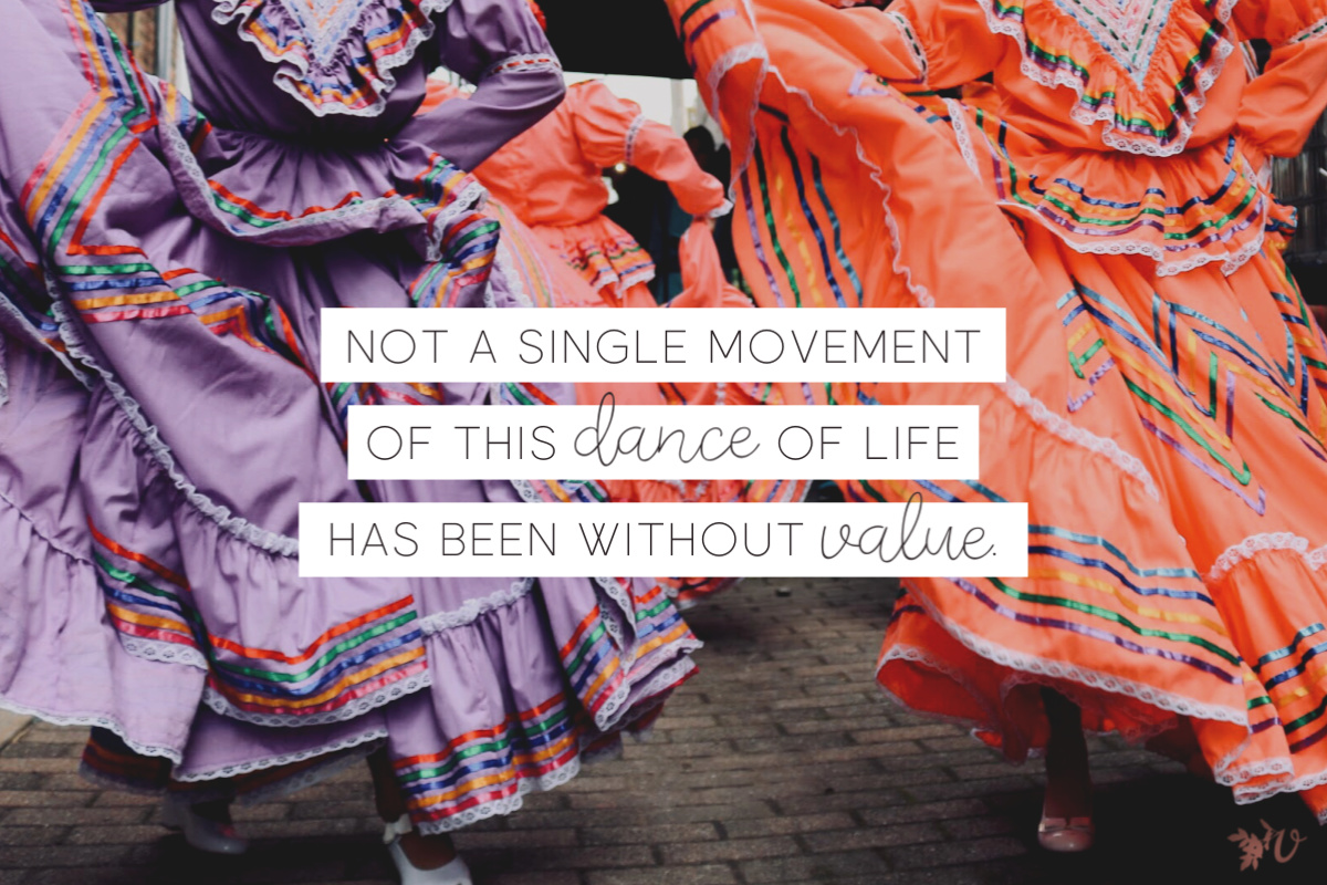 I’m taking some time today to reflect on this dance called my life. On the twists and the trips, the years of practice and the brief moments on stage. And sitting here thinking brings one thing to the front: it all mattered. Every moment. Not a single movement of this dance of life has been without value.
