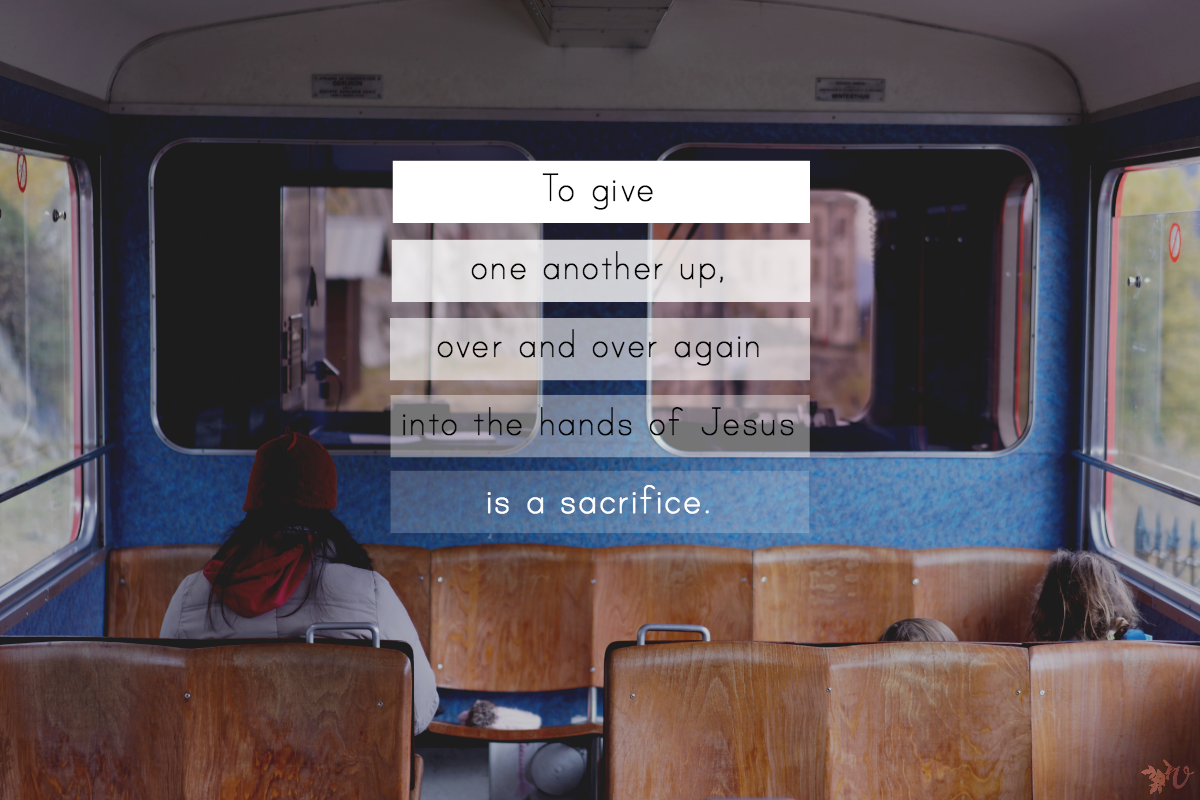 To give one another up, over and over again into the hands of Jesus, is a sacrifice.