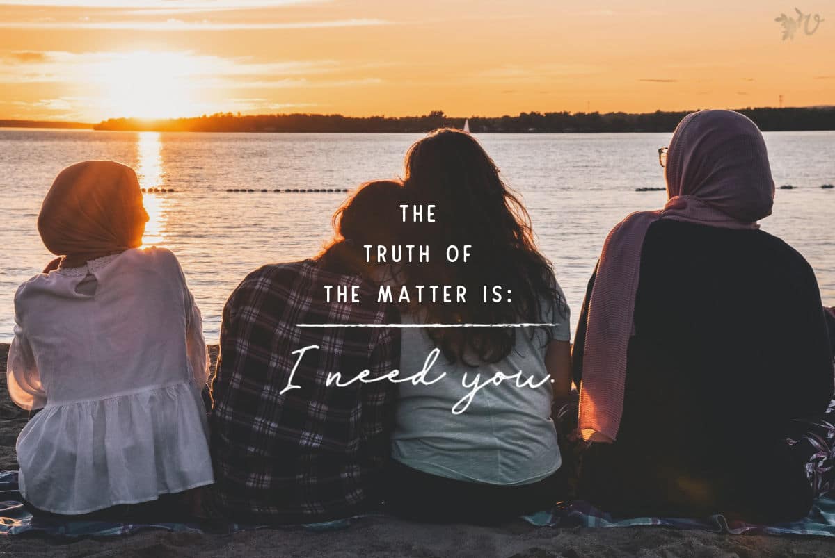 The truth of the matter is, I need you. I need the gifts that you bring to the table that I don’t have. I need to be an auntie to your kiddos, let you listen when I talk about the ache of my singleness rather than keeping it hidden away. I need to send you flowers and let you stop by with a cup of coffee.