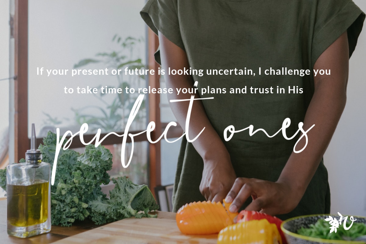 If your present or future is looking uncertain, I challenge you to take time to release your plans and trust in the Lord’s perfect ones.