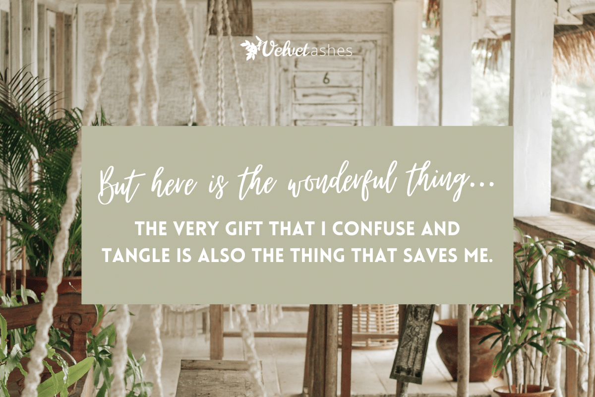 But here is the wonderful thing—the very gift that I confuse and tangle is also the thing that saves me.
