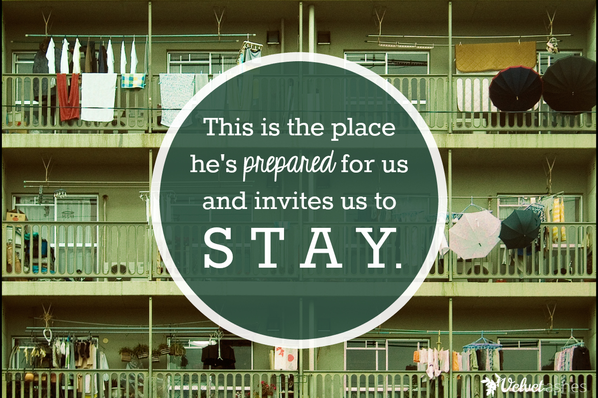 “STAY. To settle for less than perfect, less than ideal (at least in the world’s eyes), to be content in this place. In our staying and obeying we’re blessed and positioned to bless others.” Amen.