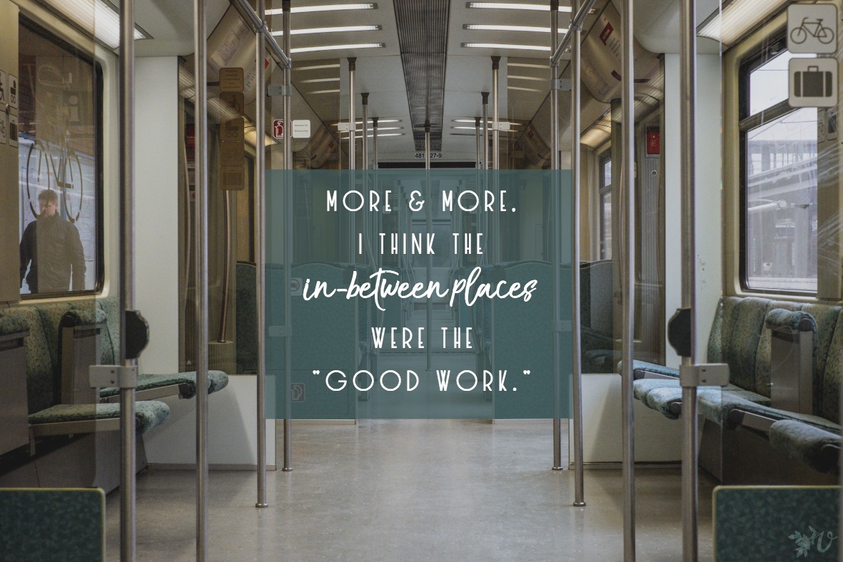 Upon leaving our overseas home, a dear expat friend who we knew had some serious baggage and hang-ups (I mean, yeah, we all do) told my husband and I how much we had meant to her. She expressed just how much our relationship had spoken to her heart. It was a big deal for her to say those things. Our primary time together was spent in the in-between spaces on our way to places. We thought we were there to get to those places and do the good work. I think more and more the in-between places were the “good work”.
