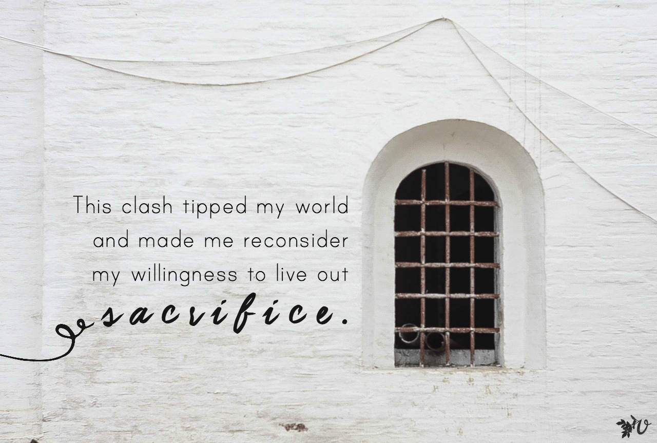 The clash arrived between the things I knew I would sacrifice and the things I was being forced to sacrifice. It was a clash that tipped my world and made me reconsider my willingness to live out the sacrifice. This new overseas journey was requiring me to truly let go. It was asking me to sacrifice for real in ways that I was unprepared to sacrifice.
