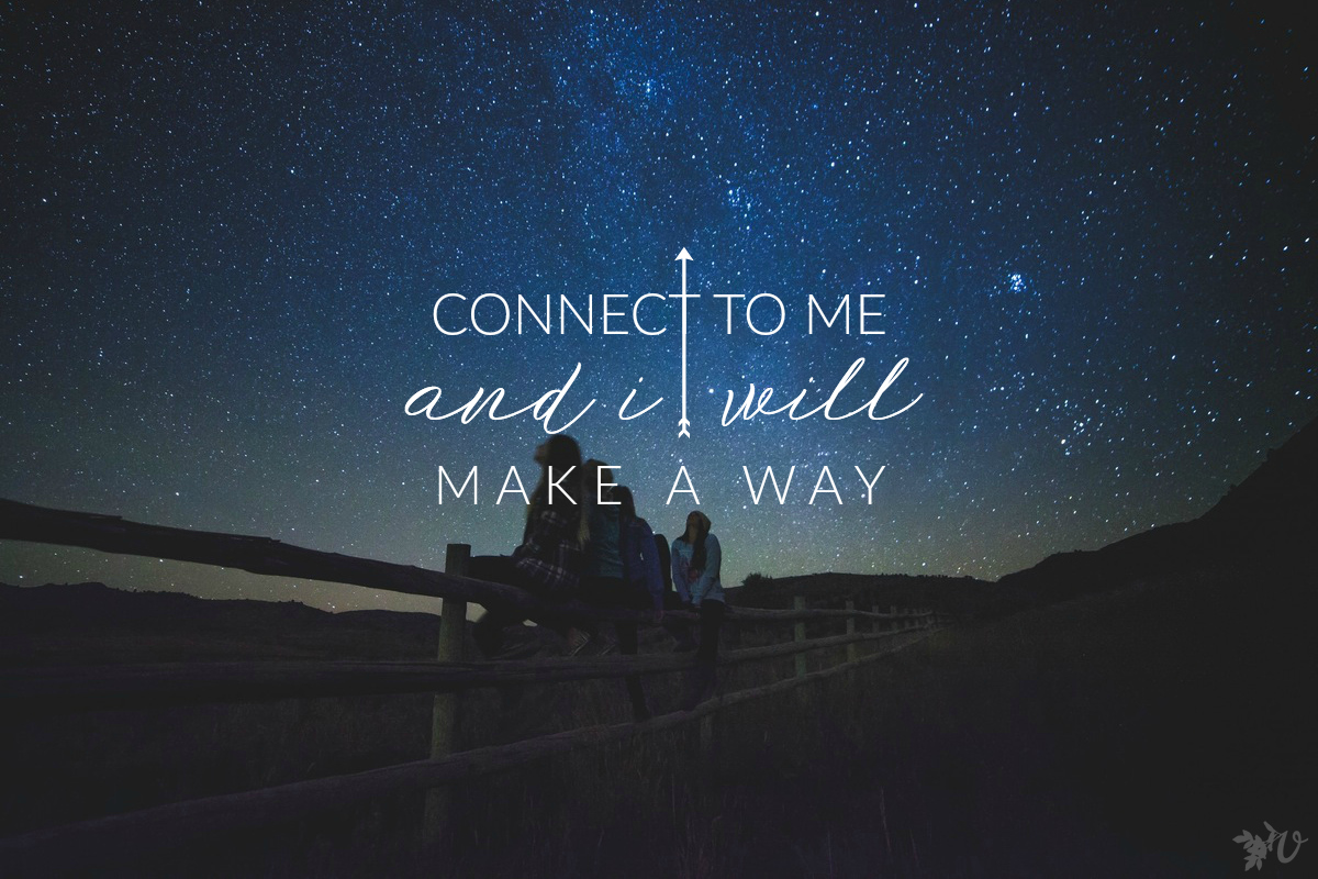 So, as I call out to the Father with desperate cries of how and who and when, He leans in close and whispers, “Connect. Connect to Me and I will show you the way. Connect to Me and I will make a way. Connect to Me and I will show you great and marvelous things. Connect to me, because with Me, all things are possible.”