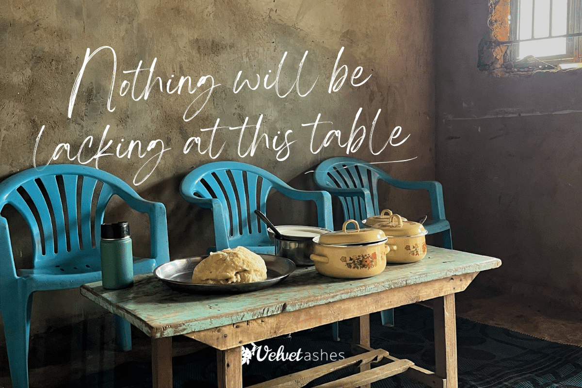 I thought this picture was from Zambia, the nation I have been in for 10 years now. It’s identical to the table, chairs, pots, and Nshima (the maize meal staple) we eat often. So sweet and meaningful, thank you for sharing this!