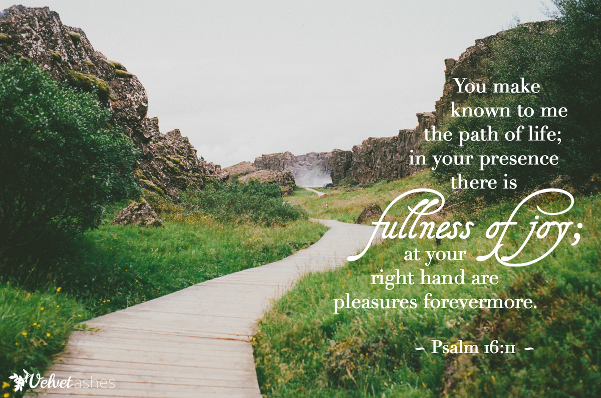 “You make known to me the path of life; in your presence there is fullness of joy; at your right hand are pleasures forevermore.” (Psalm 16:11)