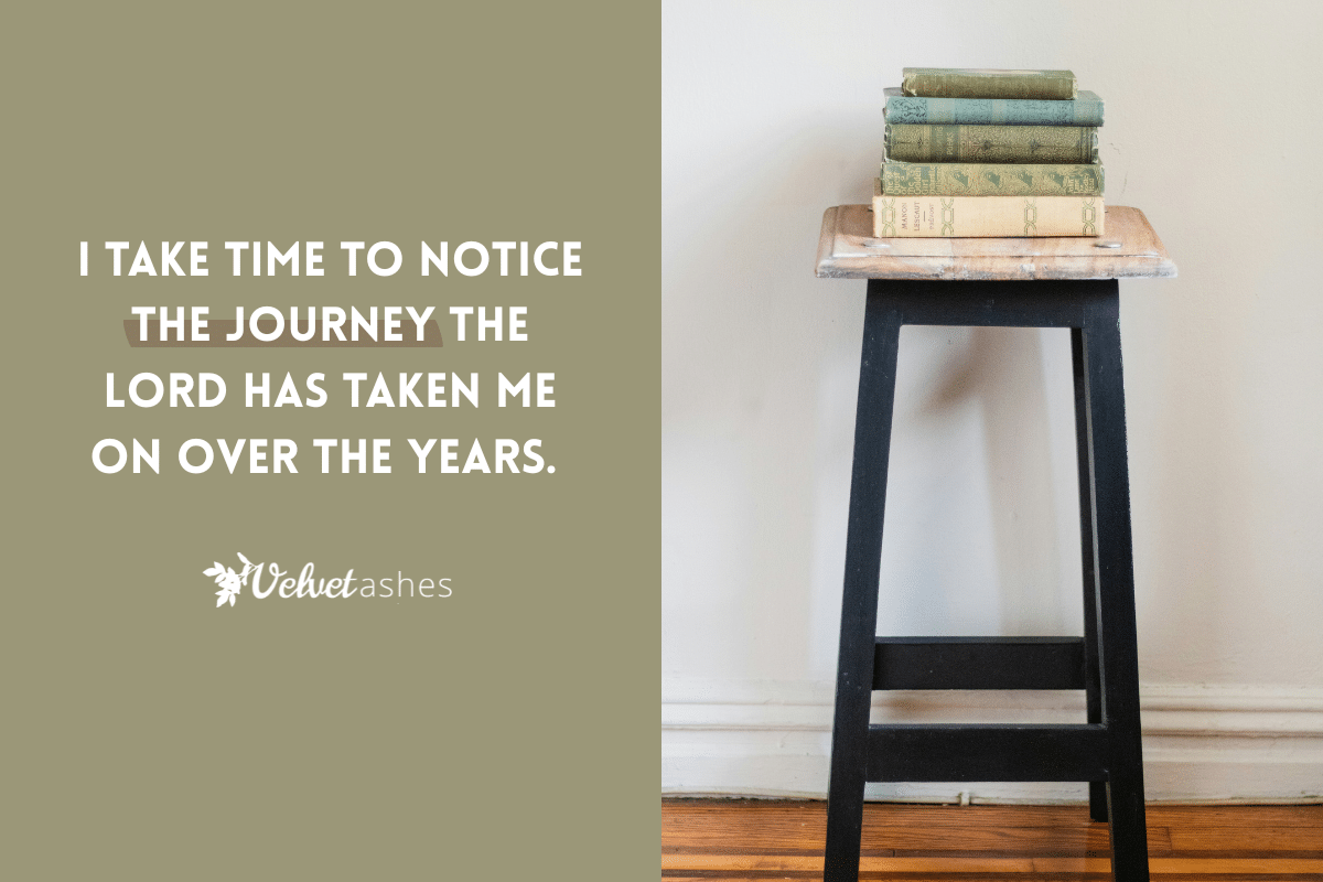 Yet, as I pause to be “bent back” or to reflect, I am reminded of his overwhelming love for me. I am discovering a transformation made over time as his provision, his promise, his guidance, and his comfort have etched their way into my heart. He has been ever-present within the same pages worn thin and will continue to journey on with me.